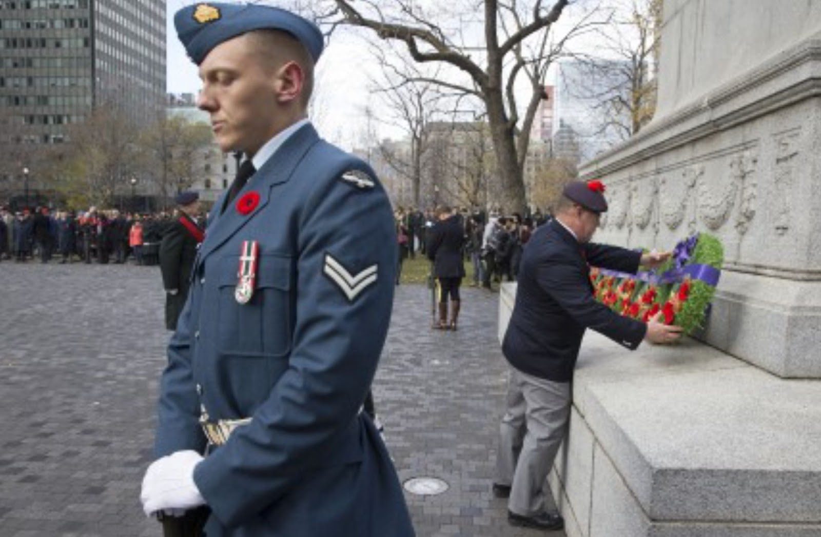 Так отмечали ветеранов и их подвиг. На церемонии присутствовали тогдашний мэр Монреаля Валери Планте, которая сказала, что она особенно относится к этой церемонии, поскольку в свое время работала на мемориале Вими во Франции. Именно там воевали канадцы во время Первой мировой войны.