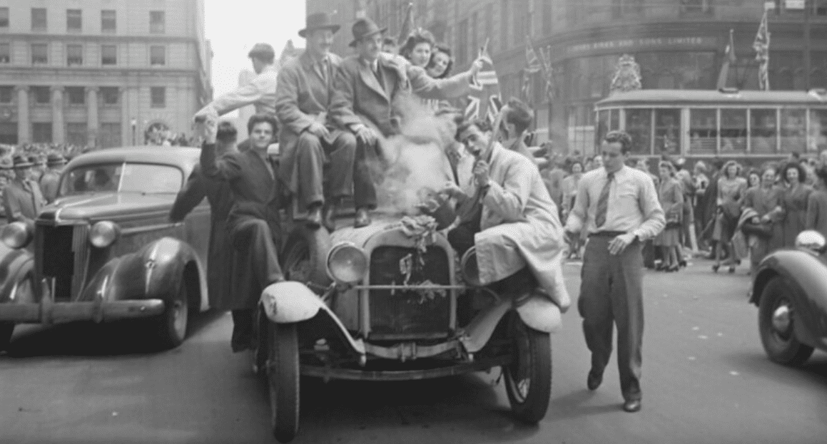 Война в Европе подходила к концу. События ускорились 30 апреля 1945 года вместе с самоубийством нацистского лидера Адольфа Гитлера, когда советские войска продвигались к берлинскому подземному бункеру, где он прятался. Через несколько дней начались переговоры о капитуляции Германии. 7 мая генерал Дуайт Д. Эйзенхауэр, Верховный главнокомандующий союзными силами, принял безоговорочную капитуляцию всех немецких войск в школе в Реймсе, Франция. Война в Европе закончилась. Капитуляция была официально объявлена на следующий день, 8 мая 1945 года, который был назван «Днем победы в Европе». Мир встретил эту новость с энтузиазмом. Однако война против Японии к тому времени еще не закончилась, к тому же астрономические человеческие потери в этой войне приглушили эйфорию после объявления о прекращении военных действий в Европе.